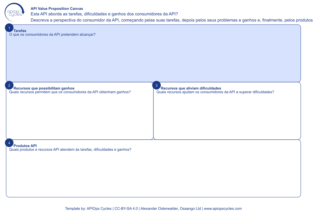 Alinhar as funcionalidades da API com as necessidades dos utilizadores, mapeando tarefas, problemas e ganhos para os produtos da API.